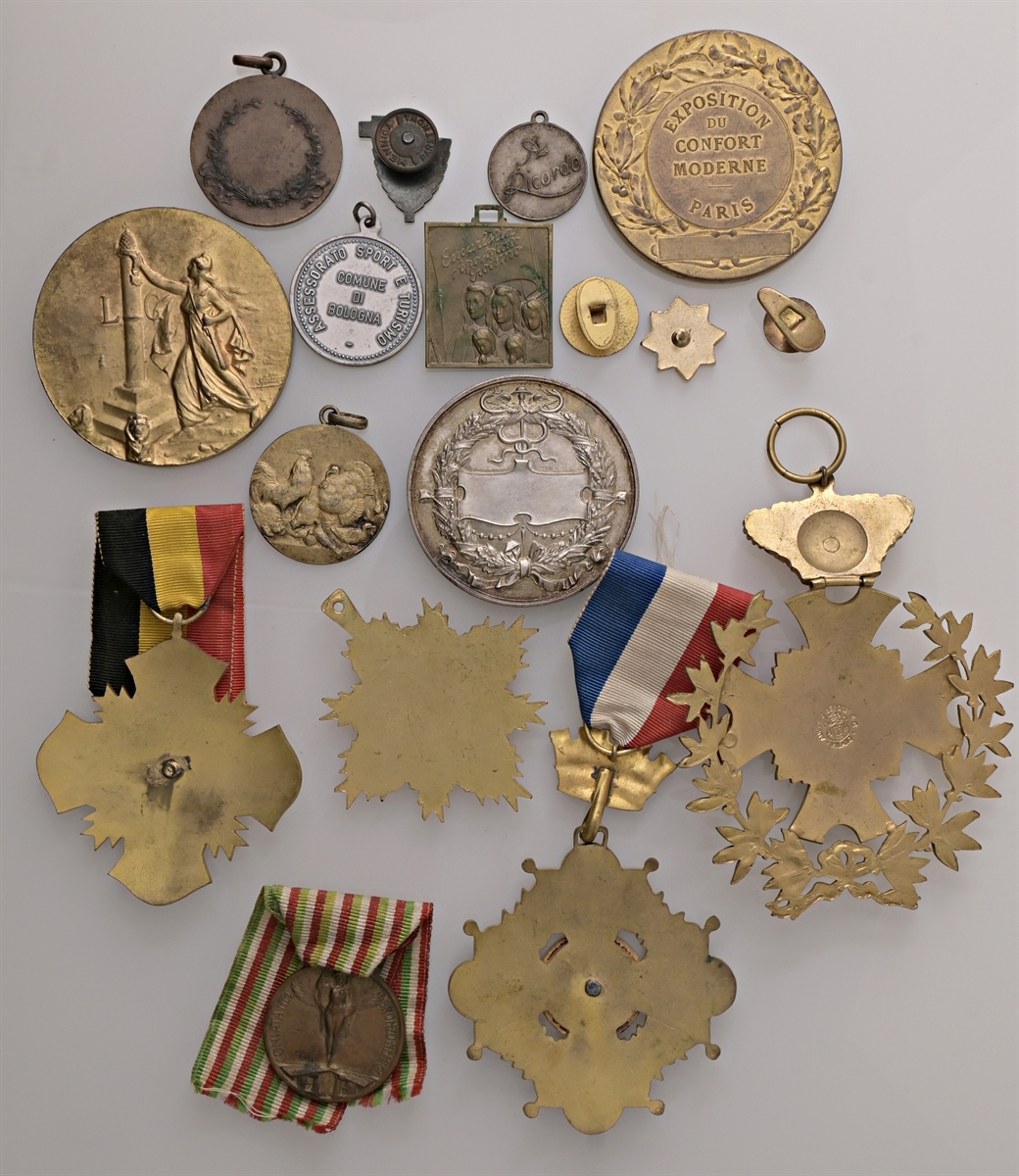 Medagliere con vari premi per esposizioni nazionali e internazionali.
