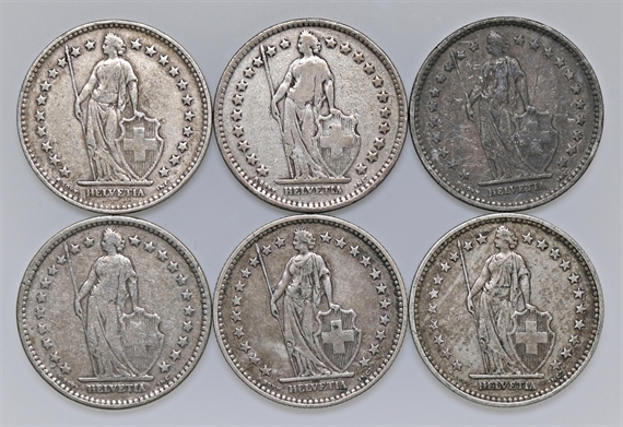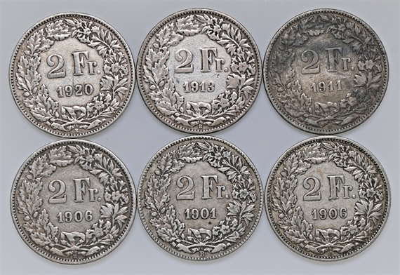 Lotto di n. 6 - 2 franchi svizzeri: si segnala 2 Franchi 1901.