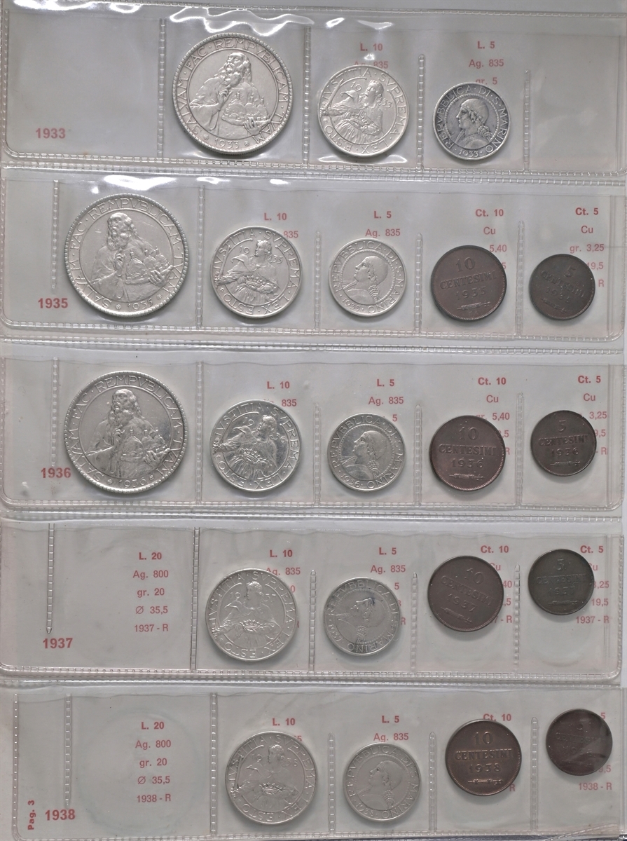 San Marino. Vecchia Monetazione, 1864-1938. Collezione delle monete emesse dalla repubblica sanmarinese dal 1864 al 1938: mancano le monete in oro, la serie del 1898 e la 20 Lire 1937 e 1938.