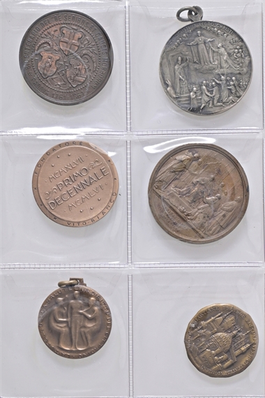 Tesoretto famigliare comprendente 73 monete, medaglie, gettoni etc etc di varie città, personaggi, metalli vari.
