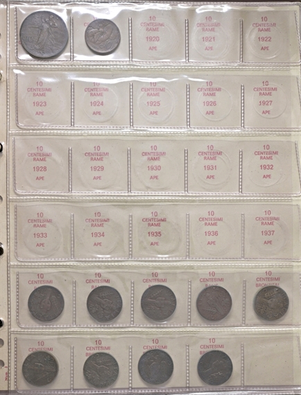 Collezione delle monete di Vittorio Emanuele III con 108 monete di cui 30 in argento. Si segnala10 centesimi 1919 q. BB, la serie della Lira al 1901 al 1943 (Lira 1905 q. BB), Lira 1936 (BB), Lira 1943 (SPL), le restanti da BB a SPL, 2 Lire 1914 al 1917 (