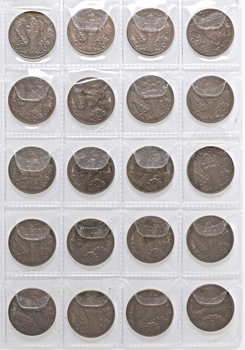 Lotto di n. 20 monete da 10 Centesimi 1943 a. XXI in Bronzital.