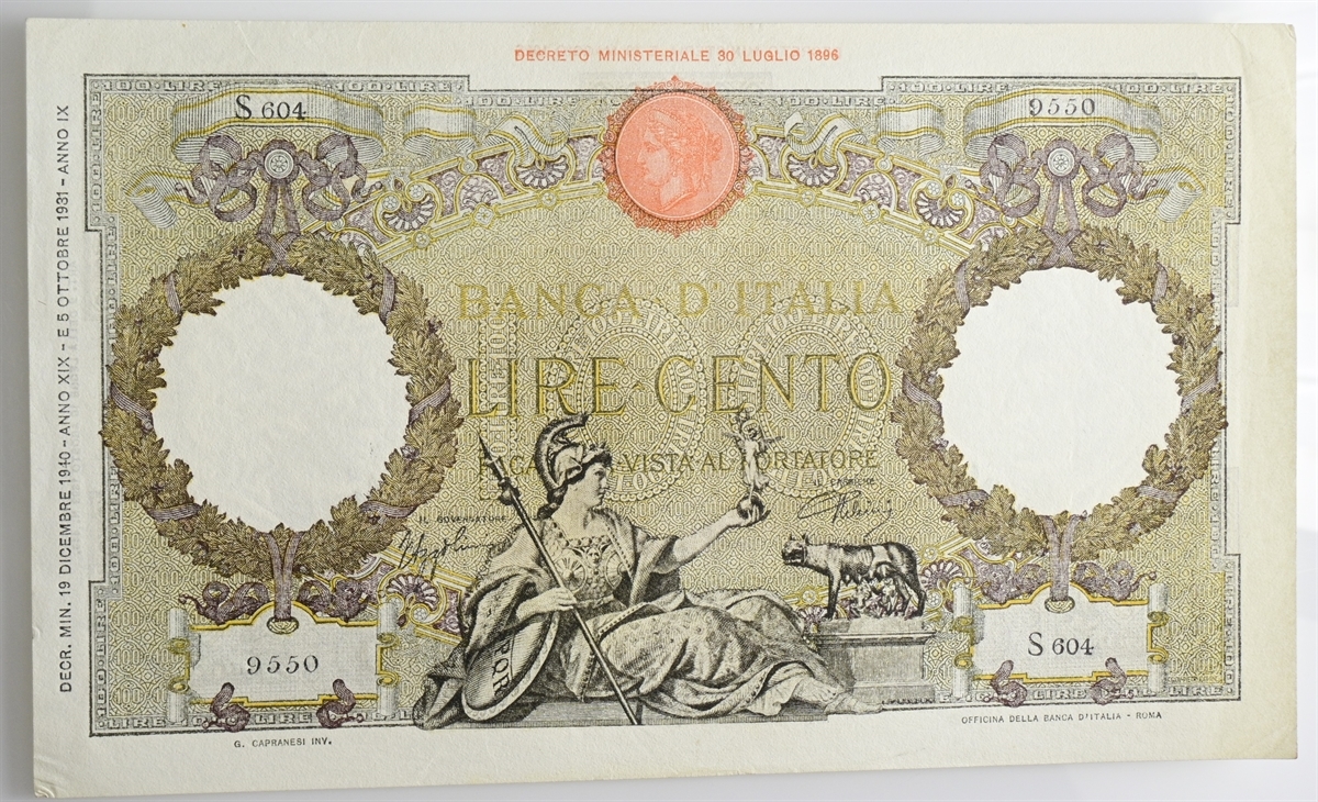 Vittorio Emanuele III. 100 Lire tipo 19-12-1940.