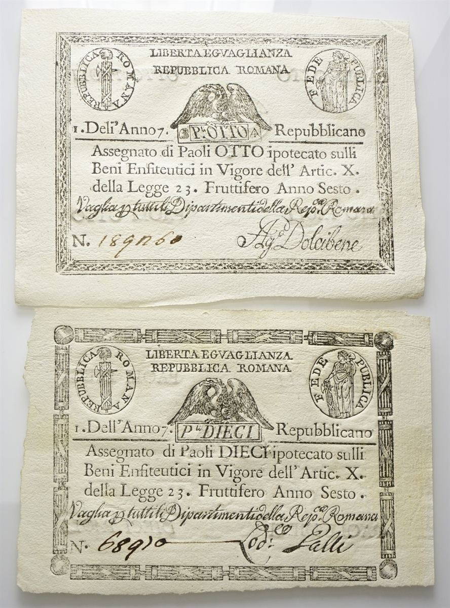 Repubblica Romana. Lotto di 2 esemplari: 8 e 10 Paoli.