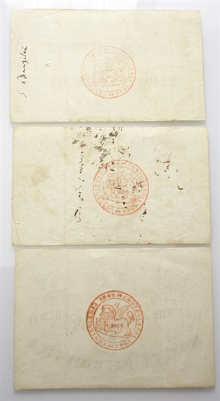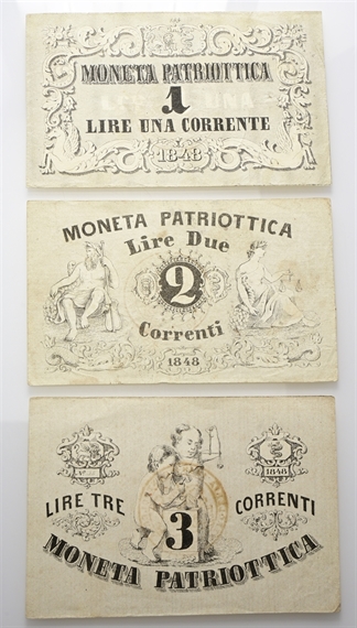Banca Nazionale di Venezia. Moneta Patriottica 1848. Lotto di 3 esemplari: 1-2-3 Lire 1848.