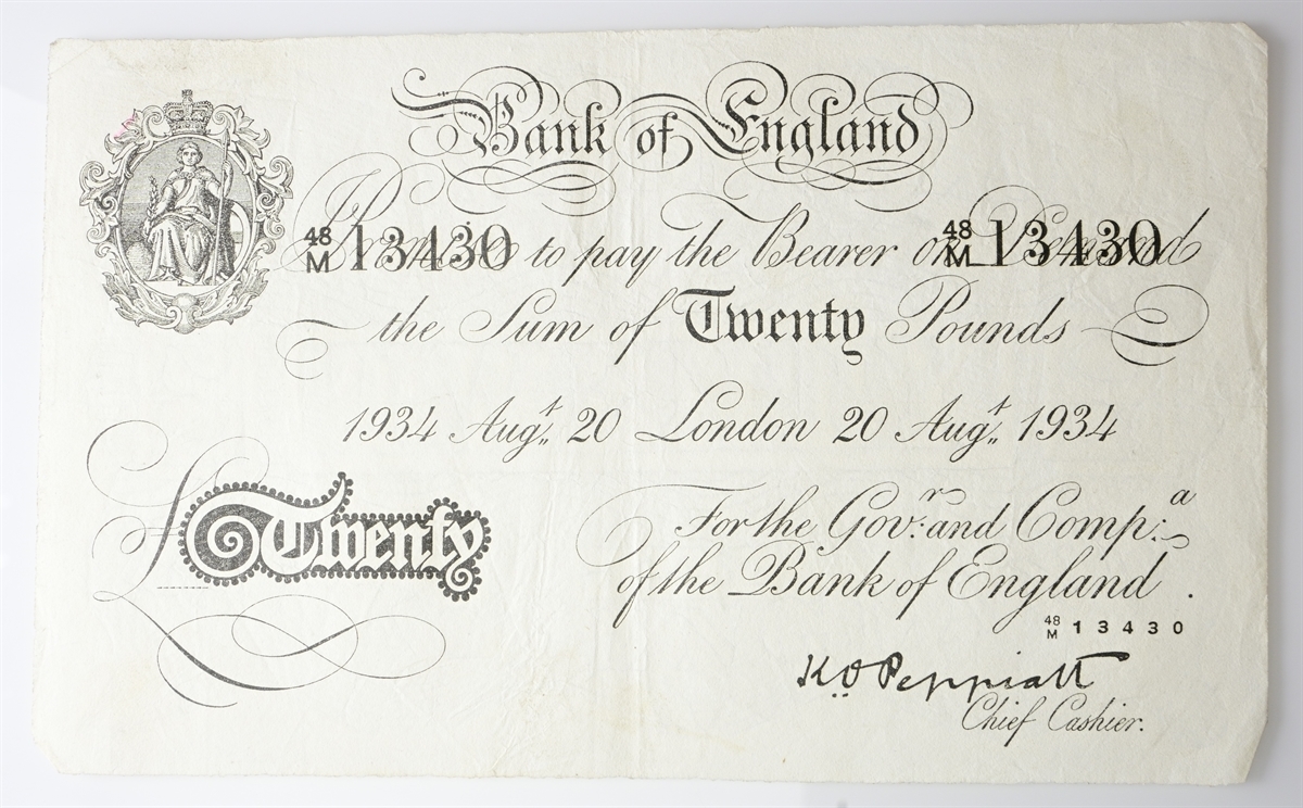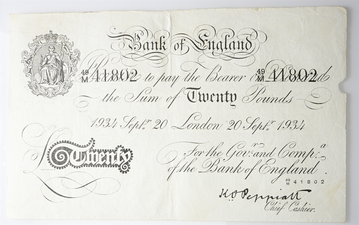 Gran Bretagna. Lotto di 2 banconote contraffatte famose per l'Operazione Bernhard da 20 Pounds 1938.