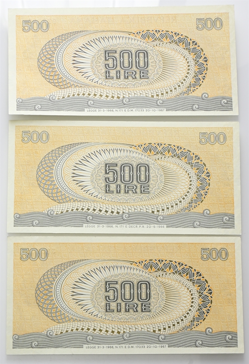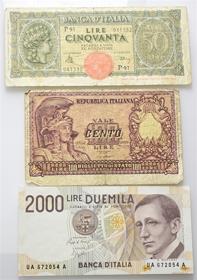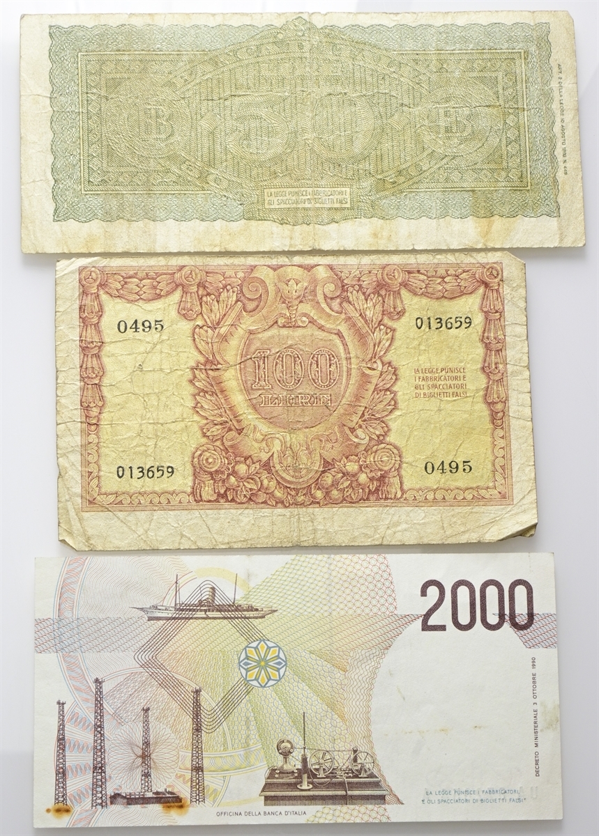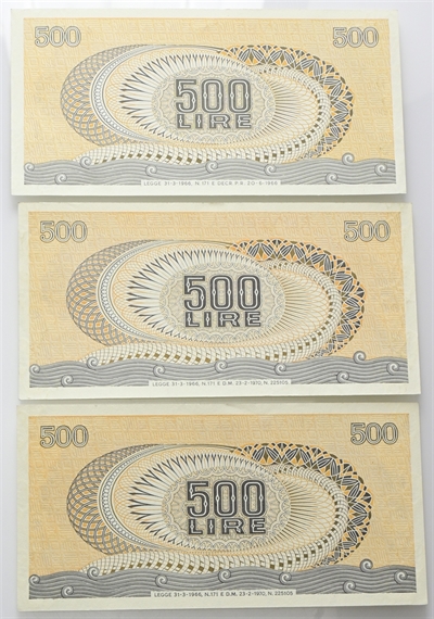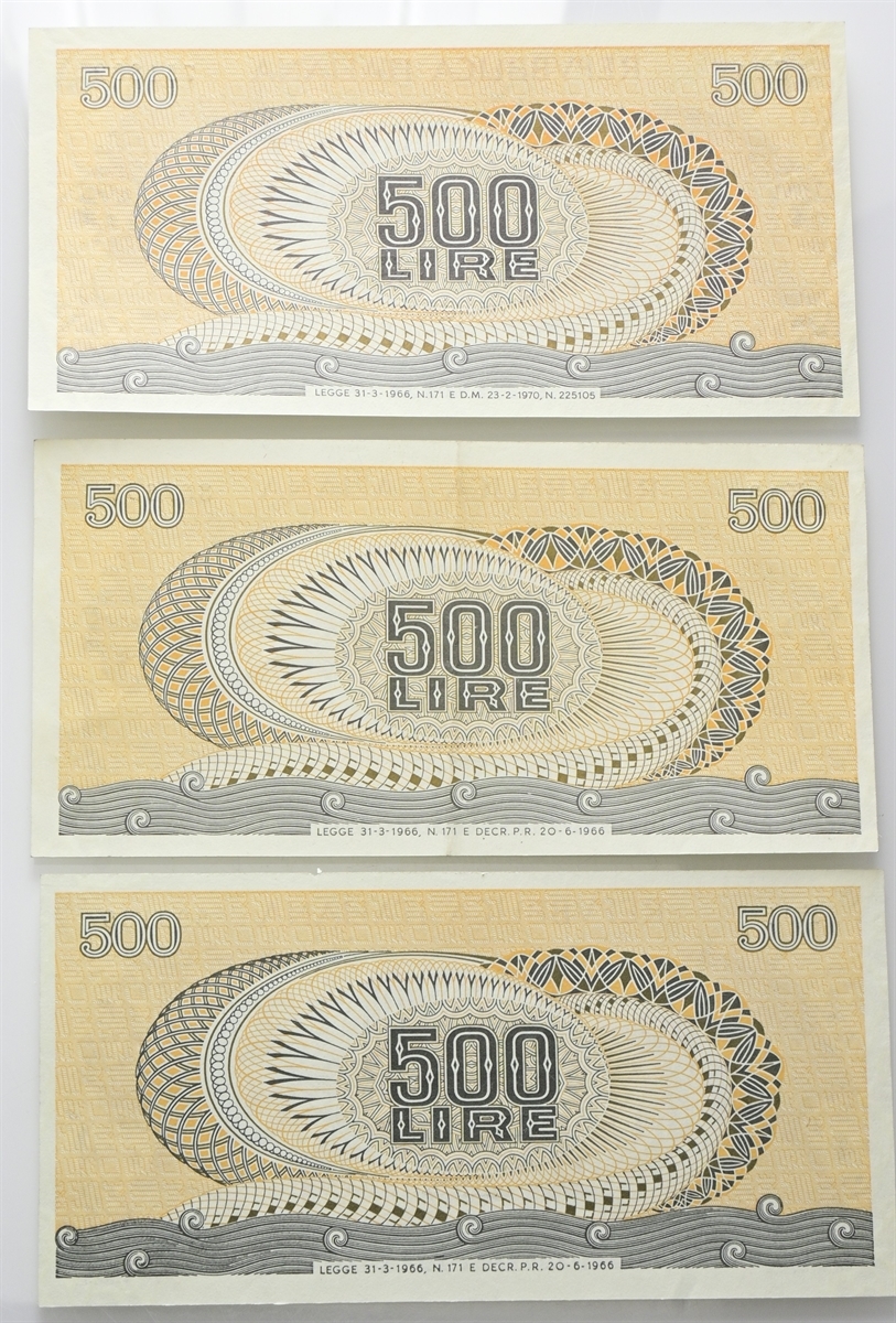 Vittorio Emanuele III e Repubblica Italiana. Lotto di 15 esemplari: 1+2 Lire +50 Lire Banca d’Italia e 9 esemplari da 500 Lire Repubblica 1966-67-1970 in FDS.+1 da 10 lire 1 da 100 lire +1 da 2000.
