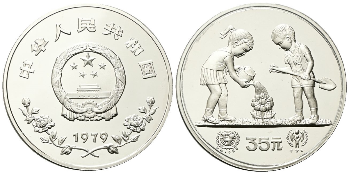 Repubblica Popolare Cinese, dal 1949. 35 Yuan 1979.Anno internazionale del bambino.