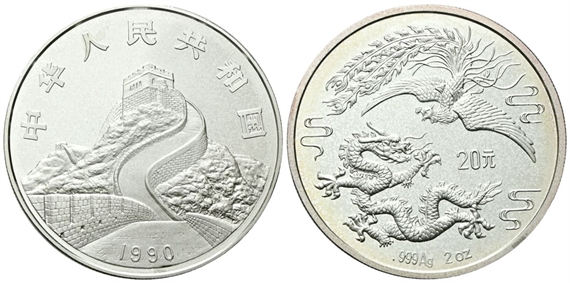 Repubblica Popolare Cinese, dal 1949. 20 Yuan 1990, Drago e fenice.