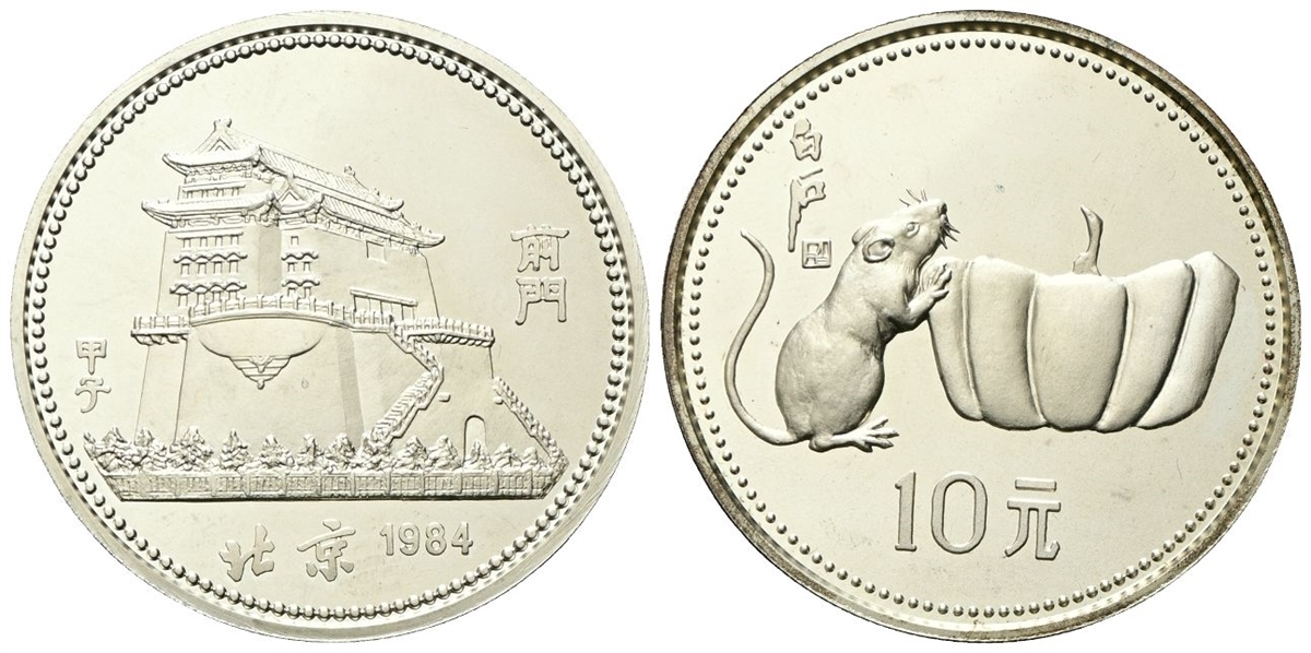 Repubblica Popolare Cinese, dal 1949. 10 Yuan 1984. Calendario cinese - Anno del topo.