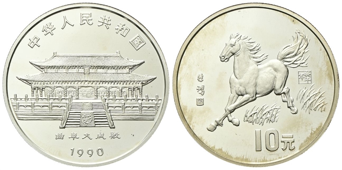 Repubblica Popolare Cinese, dal 1949. 10 Yuan 1990. Calendario cinese - Anno del cavallo.