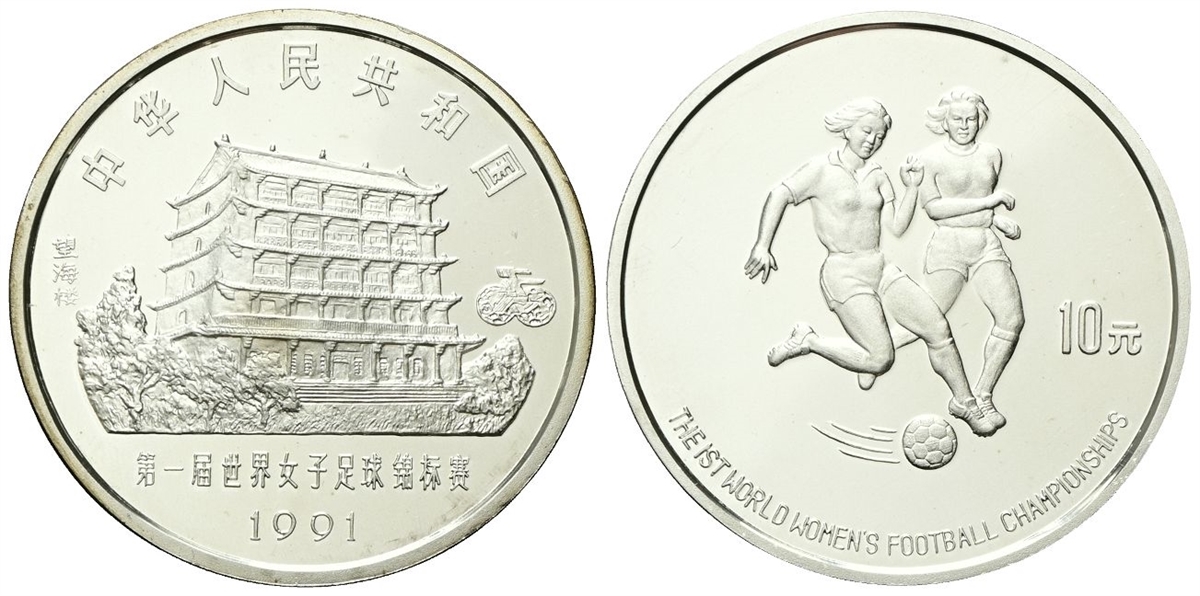 Repubblica Popolare Cinese, dal 1949. 10 Yuan 1991. Coppa del Mondo femminile FIFA.