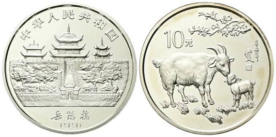 Repubblica Popolare Cinese, dal 1949. 10 Yuan 1991. Calendario cinese - Anno della capra.