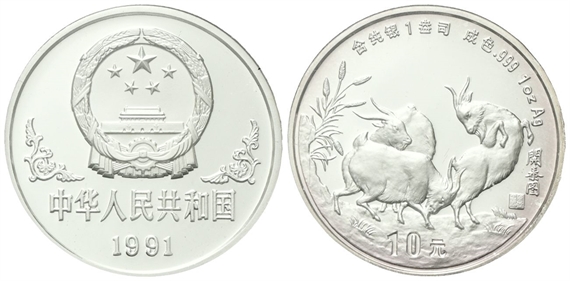 Repubblica Popolare Cinese, dal 1949. 10 Yuan 1991. Calendario cinese - Anno della capra.