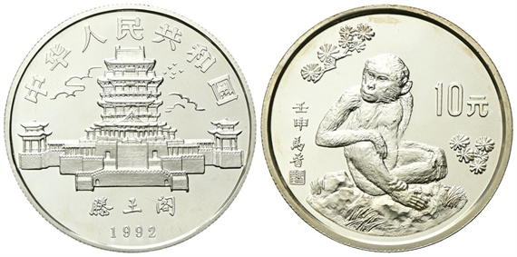 Repubblica Popolare Cinese, dal 1949. 10 Yuan 1992. Calendario cinese - Anno della scimmia.