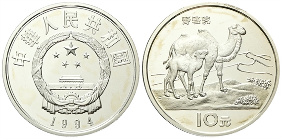 Repubblica Popolare Cinese, dal 1949. 10 Yuan 1994. Animali rari, Cammello bactriano.