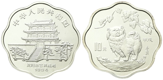 Repubblica Popolare Cinese, dal 1949. 10 Yuan 1994. Calendario cinese - Anno del cane.