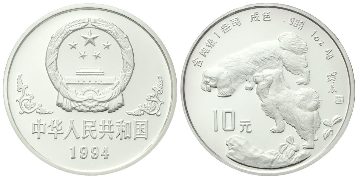 Repubblica Popolare Cinese, dal 1949. 10 Yuan 1994. Calendario cinese - Anno del cane