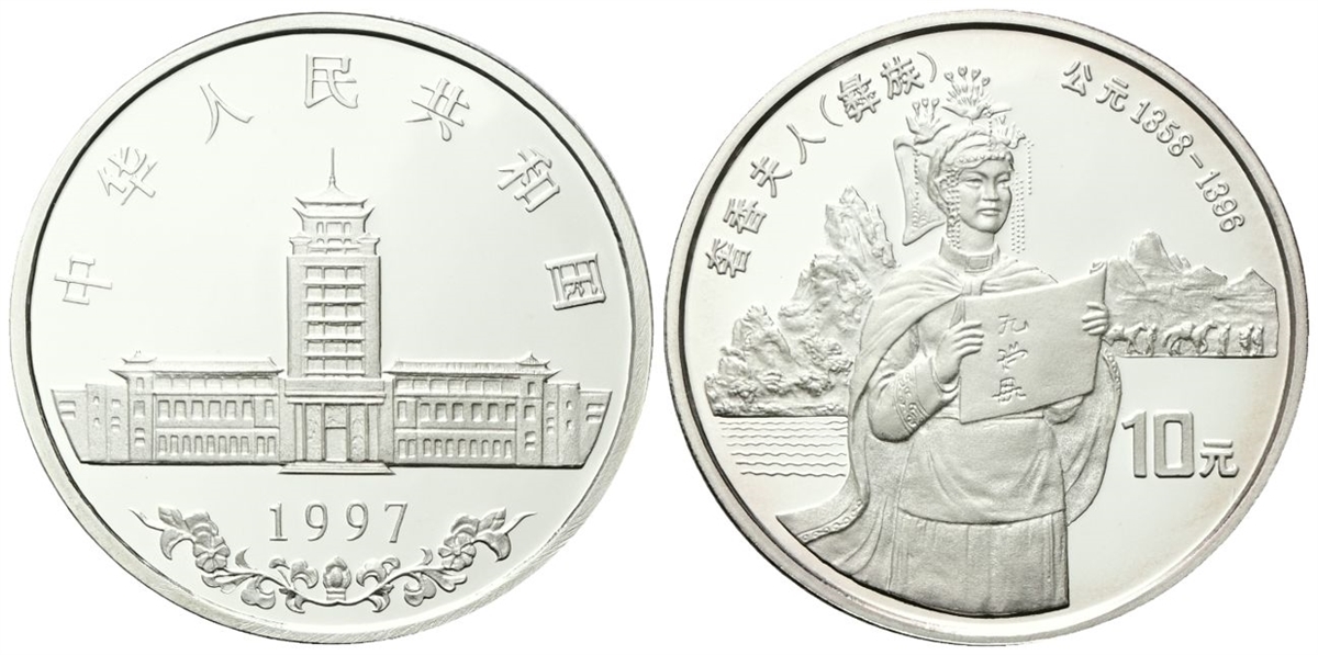 Repubblica Popolare Cinese, dal 1949. 10 Yuan 1997 Minoranze. Madame She Xiang - Legge la pergamena.