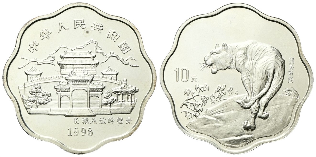 Repubblica Popolare Cinese, dal 1949. 10 Yuan 1998. Calendario cinese - L'anno della tigre.
