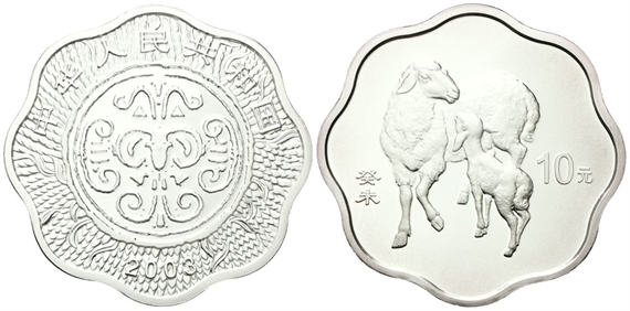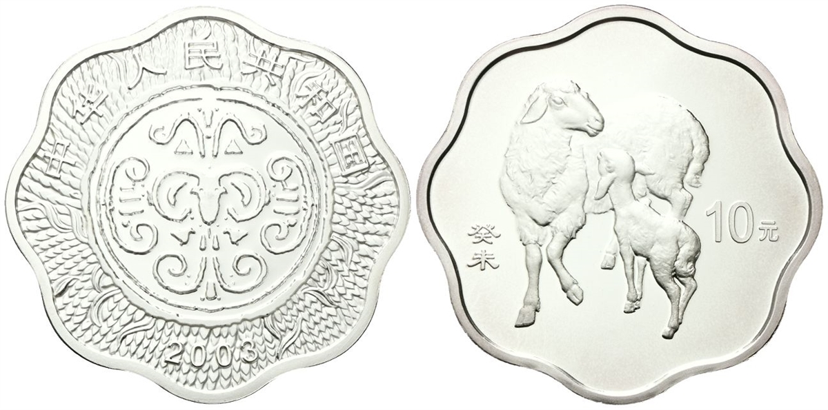 Repubblica Popolare Cinese, dal 1949. 10 Yuan 2003. Calendario cinese - Anno della capra.