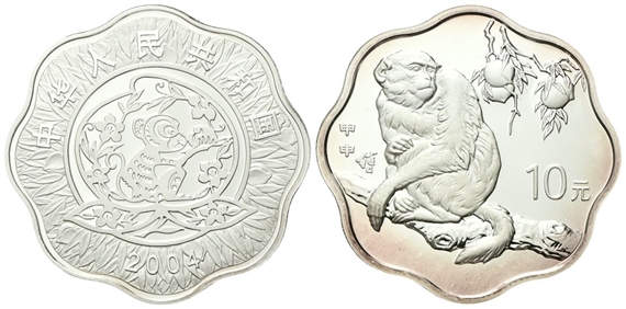 Repubblica Popolare Cinese, dal 1949. 10 Yuan 2004. Calendario cinese - L'anno della scimmia.
