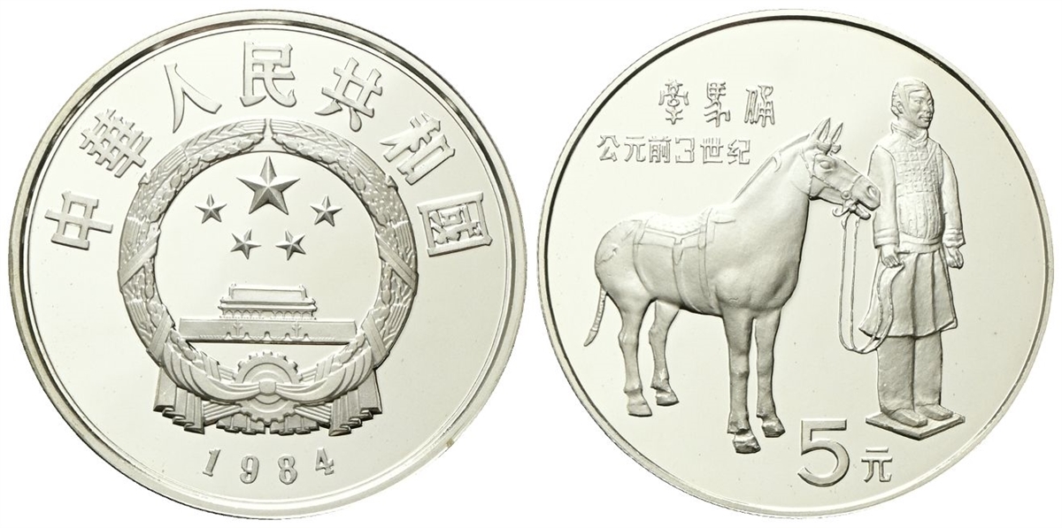 Repubblica Popolare Cinese, dal 1949. 5 Yuan 1984, Esercito di terracotta - Soldato a cavallo.