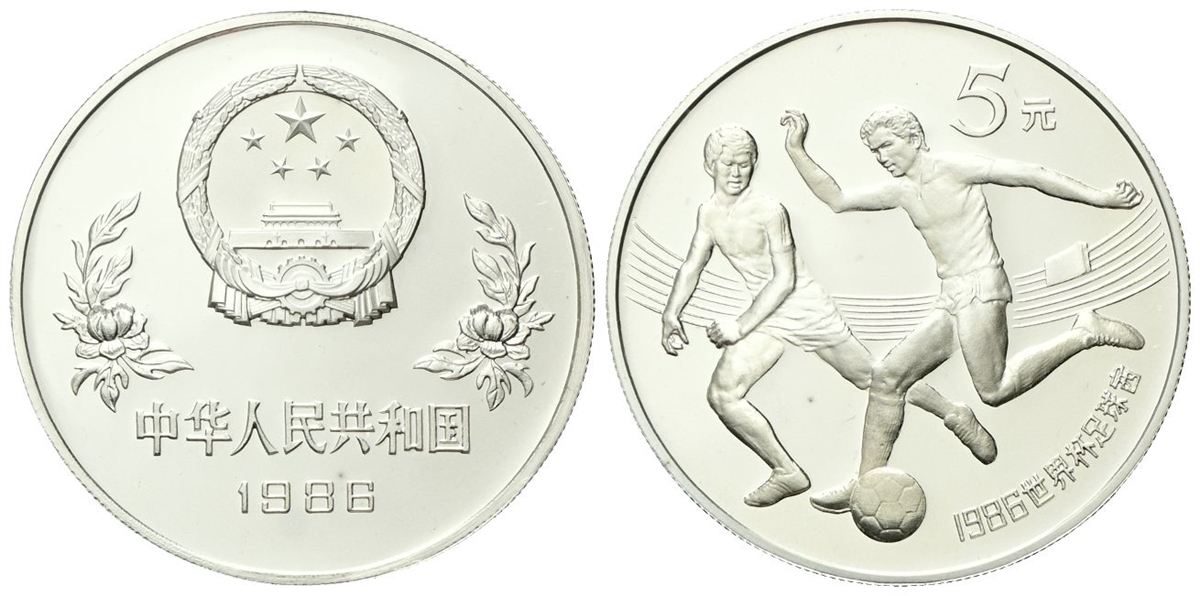 Repubblica Popolare Cinese, dal 1949. 5 Yuan 1986 FIFA World Cup, Mexico.