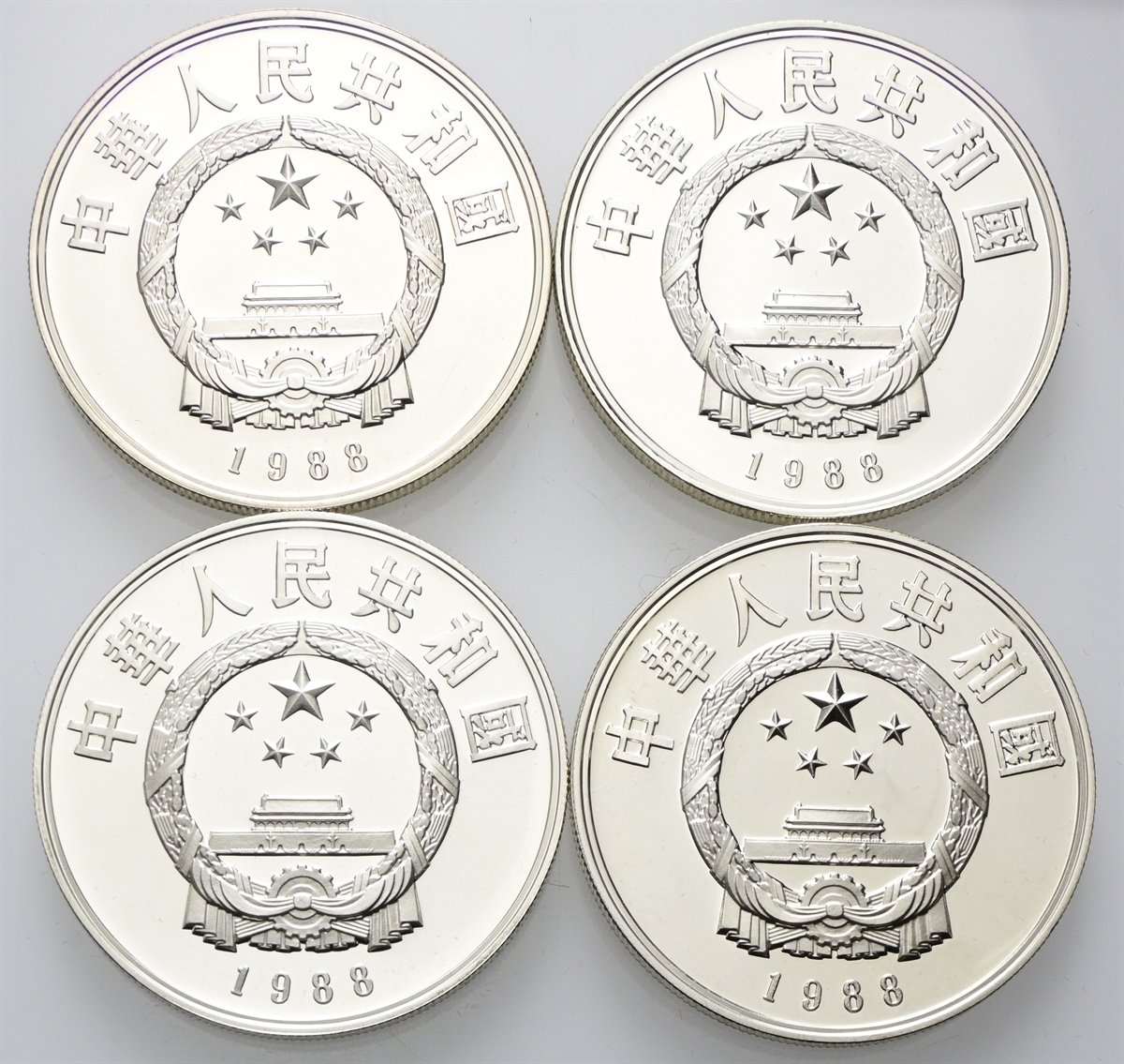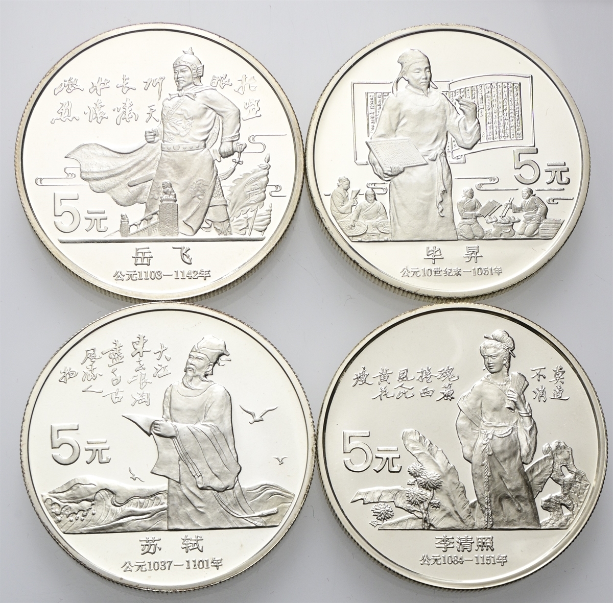 Repubblica Popolare Cinese, dal 1949. 4 esemplari da 5 Yuan 1988, Personalità cinesi - Su Shi, Li Qinqzhao, Bi sheng, Yue Fei.
