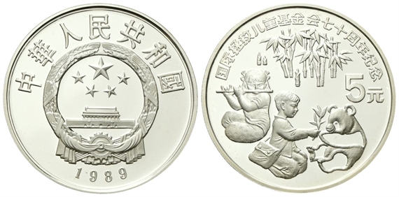 Repubblica Popolare Cinese, dal 1949. 5 Yuan 1989. 70th Anniversary Saving the Children Fund.