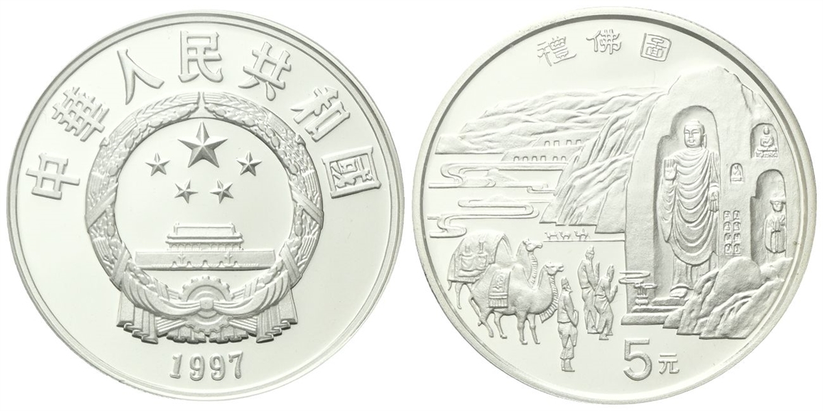 Repubblica Popolare Cinese, dal 1949. 5 Yuan 1997. Via della seta - Statua in una nicchia.