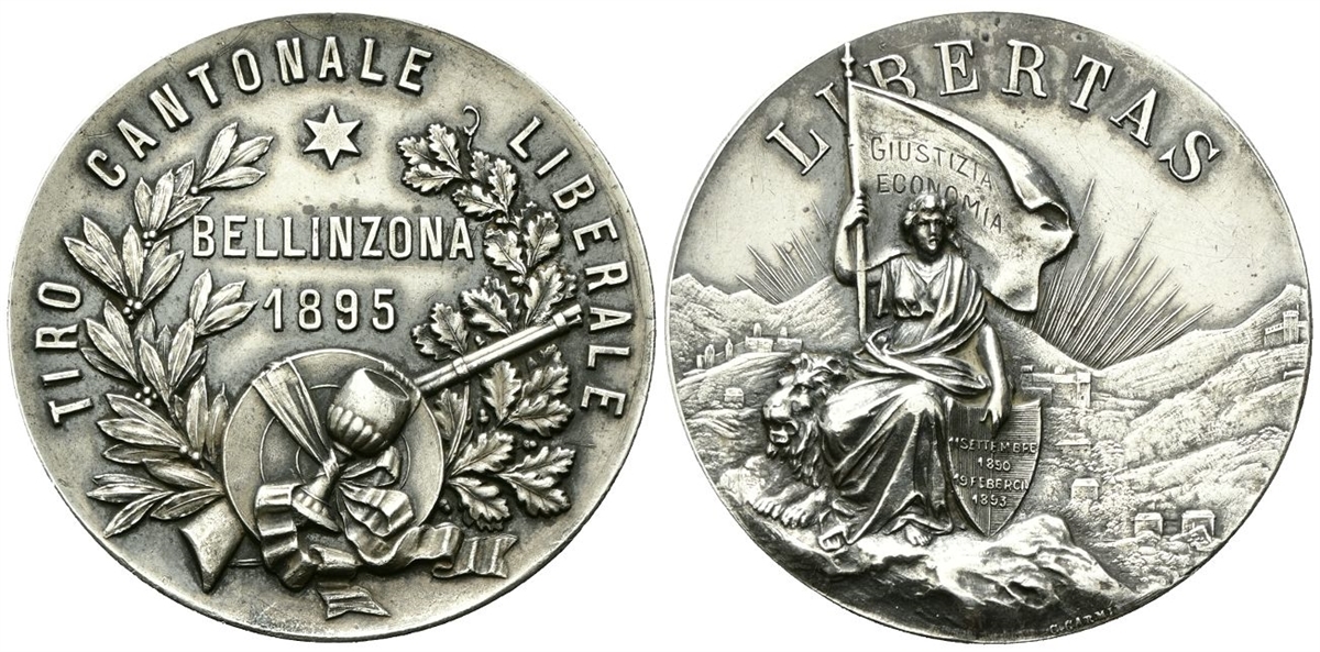 Medaglia Tiri Cantonali Liberali Bellinzona 1895 opus C. Carmine.