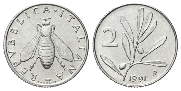 ROMA - Repubblica Italiana, dal 1946. - 2 Lire 1991.