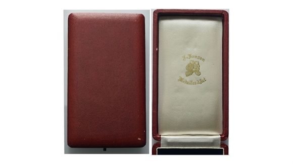 Leopoldo II, 1865-1909. Ordine della Croce Rossa Belga 1880. Medaglia di I Classe, con nastro e scatola e originali.