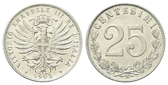 Vittorio Emanuele III, 1900-1943. 25 Centesimi 1903 Roma, Valore.
