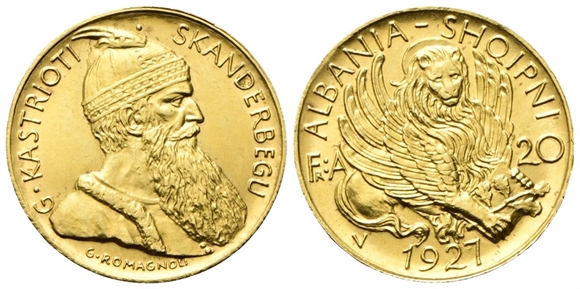 Dr. Busto di Skanderbeg a d. Rv. Leone di San Marco.
