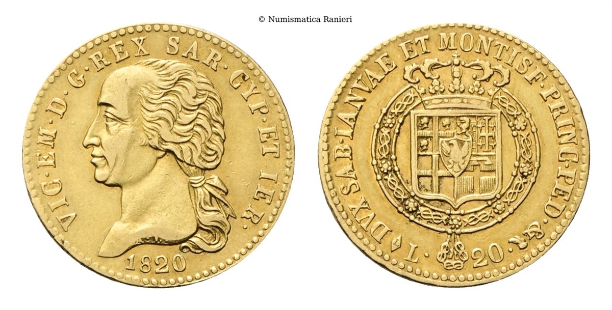 Vittorio Emanuele I, 1802-1821. 20 Lire 1820 Torino, I Tipo.