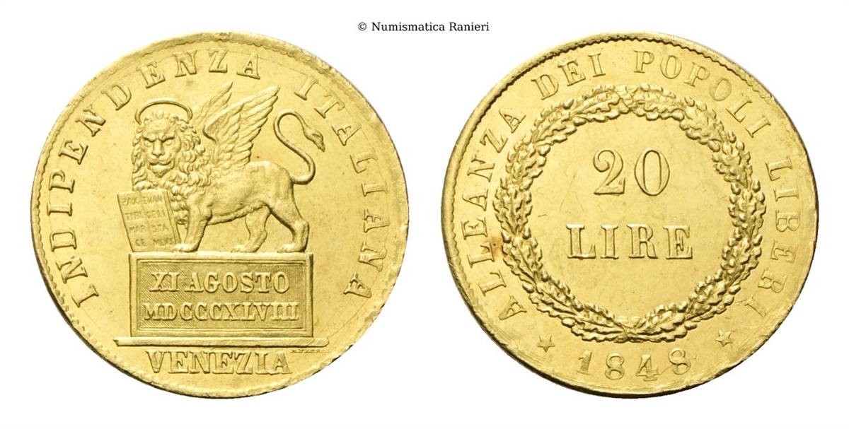 Governo Provvisorio di Venezia, 1848-1849. 20 Lire 1848.