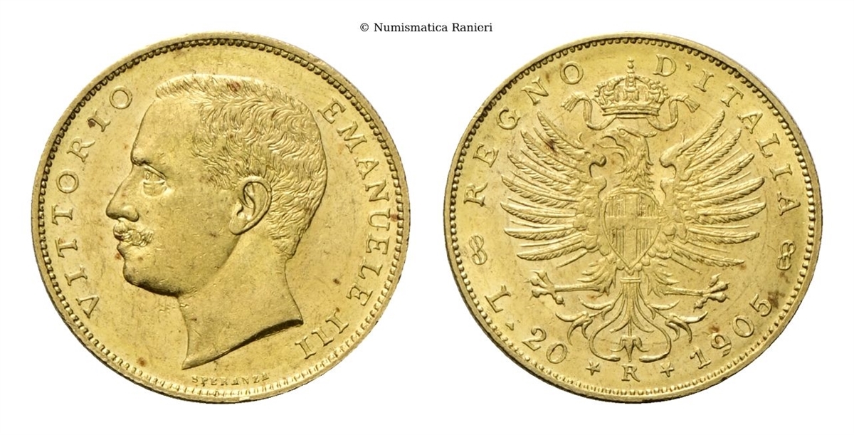 Vittorio Emanuele III, 1900-1943. 20 Lire 1905 Roma, Aquila Sabauda.
