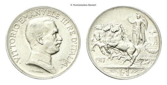 Vittorio Emanuele III, 1900-1943. Lira 1917 Roma, Quadriga briosa.